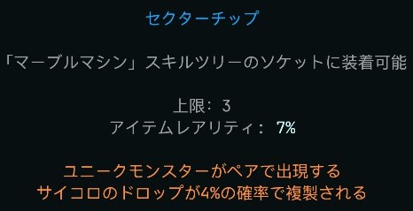 セクターチップのアフィックスも、機械スキルツリーと同様に、「+%の確率でアイテムがオクトロンに歪められる」効果を付与します。