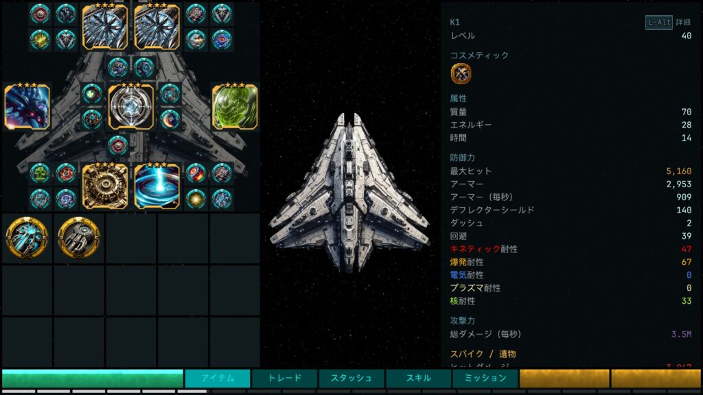 | 防御力(ライフ/アーマー/エナジーシールド) | 防御力(最大ヒット/アーマー/デフレクターシールド) |