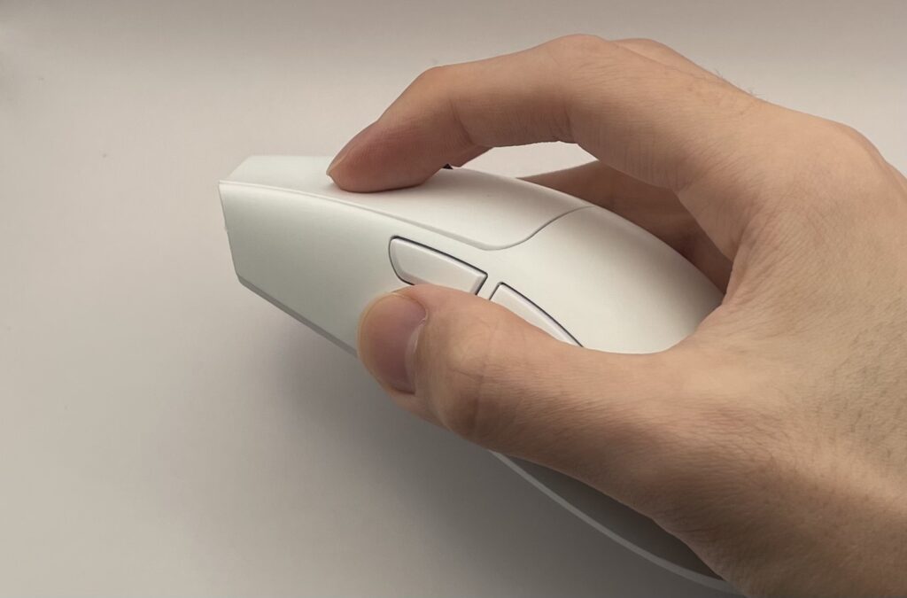 公式でも「つかみ持ち・つまみ持ちに最適」と謳っていますが、かぶせ持ちでも違和感なく使えます。 どの持ち方でもフィットする懐の広さが、このマウスの最大の特徴だと思います。